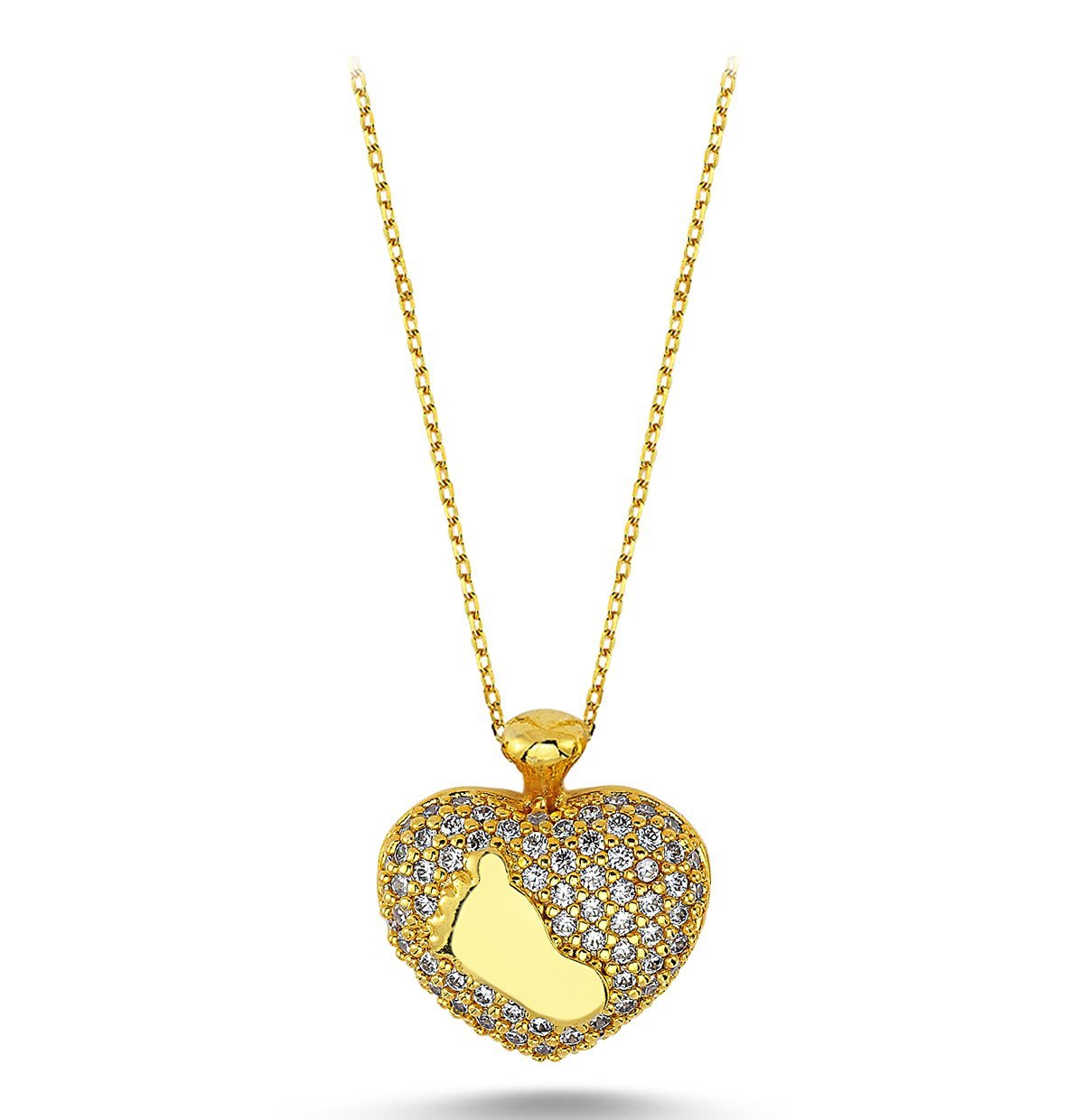 Bebek Ayak İzi Zirkon Taşlı Kalp Kolye