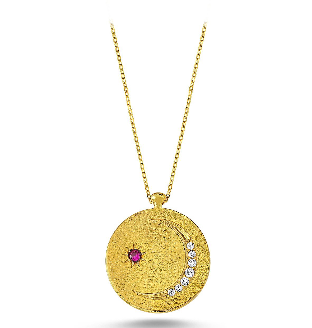 Beyaz Taşlı Ay Model Gümüş Kolye