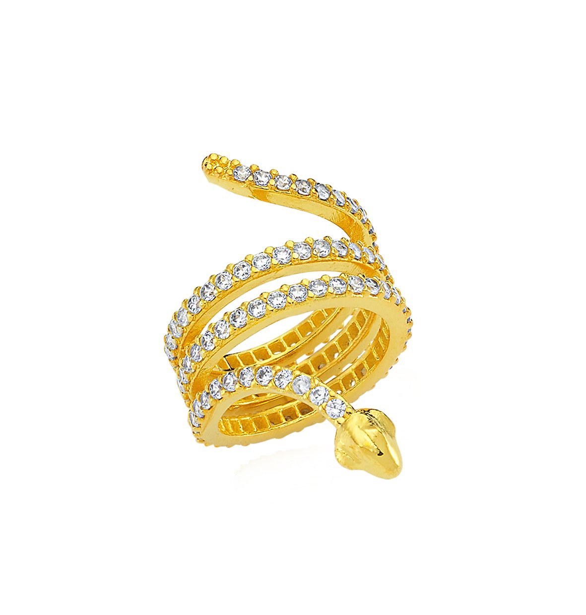 Beyaz Taşlı Gümüş Yılan Yüzük