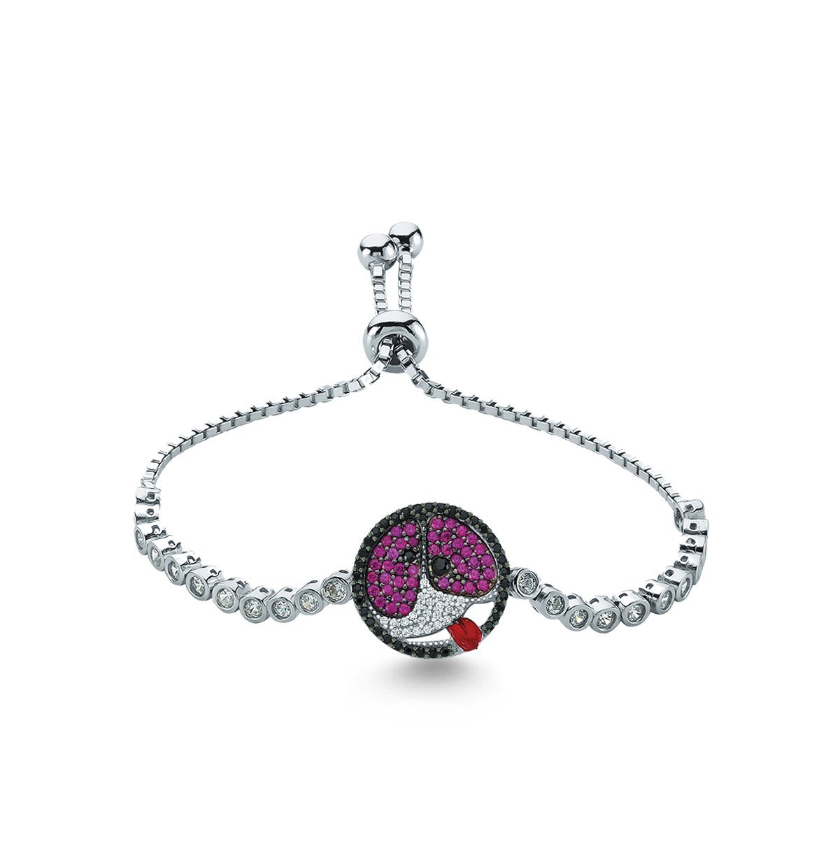 White and Fuchsia Zircon Stone Smiling Face Bracelet
