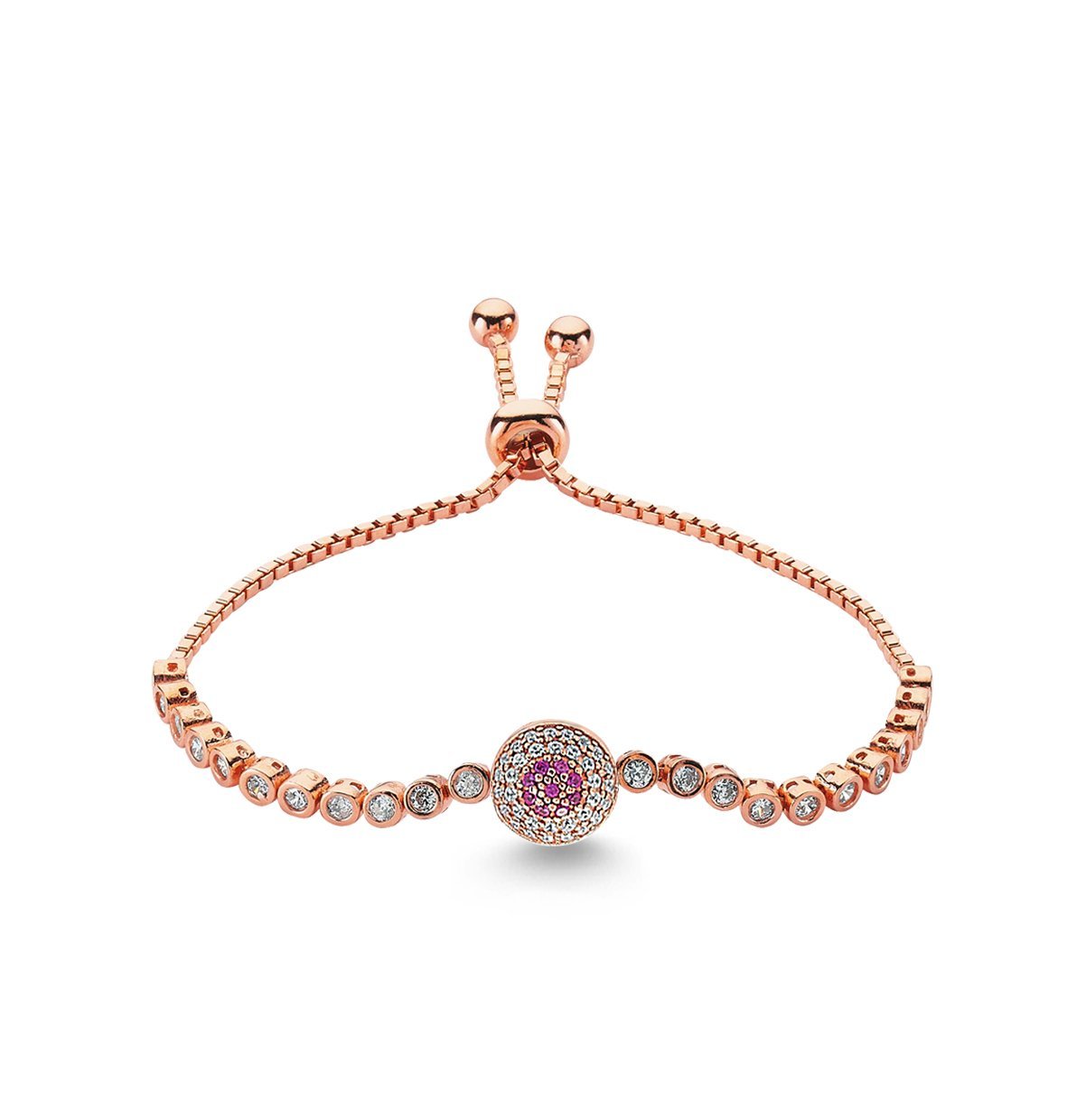 Beyaz ve Pembe Zirkon Taşlı Asansör Bileklik