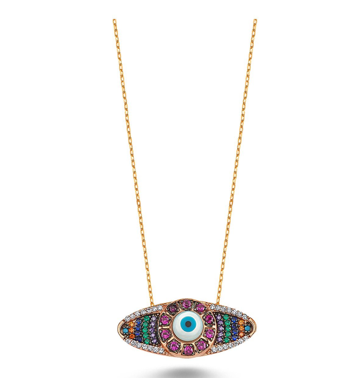 Beyaz ve Renkli Zirkon Taşlı Göz Kolye