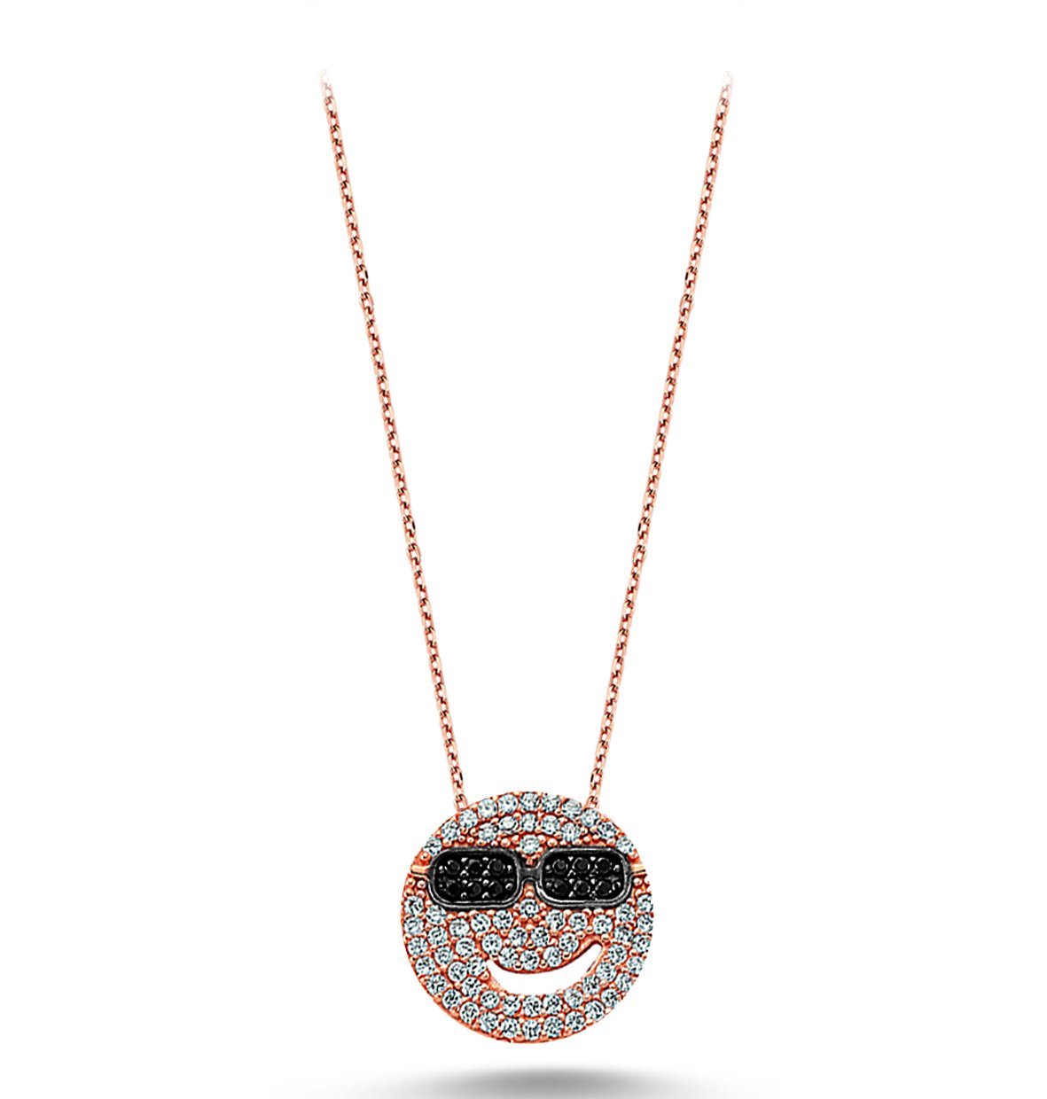 Beyaz ve Siyah Zirkon Taşlı Gülen Yüz Kolye