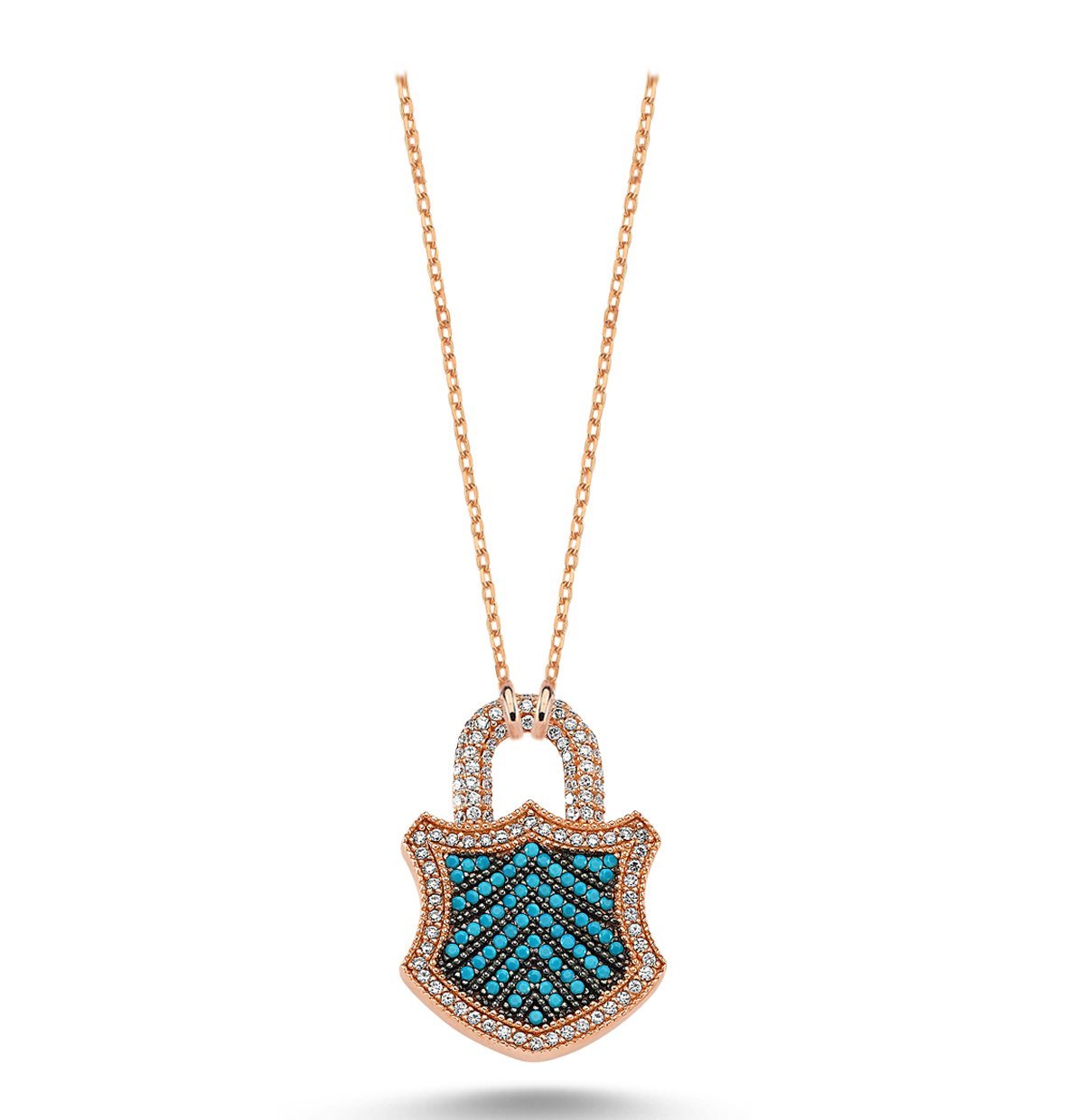 Beyaz ve Turkuaz Taşlı Kilit Kolye