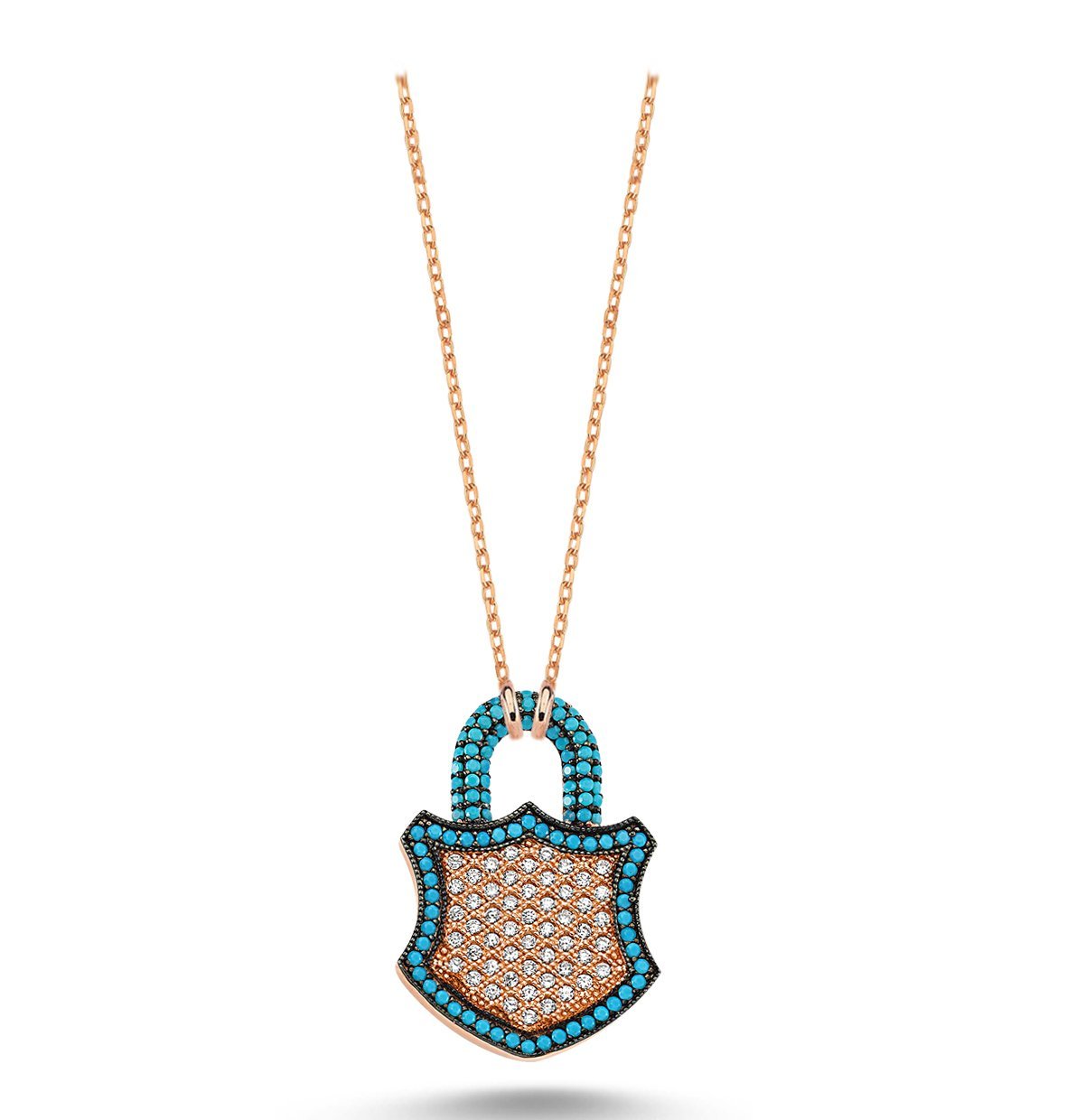 Beyaz ve Turkuaz Taşlı Kilit Kolye