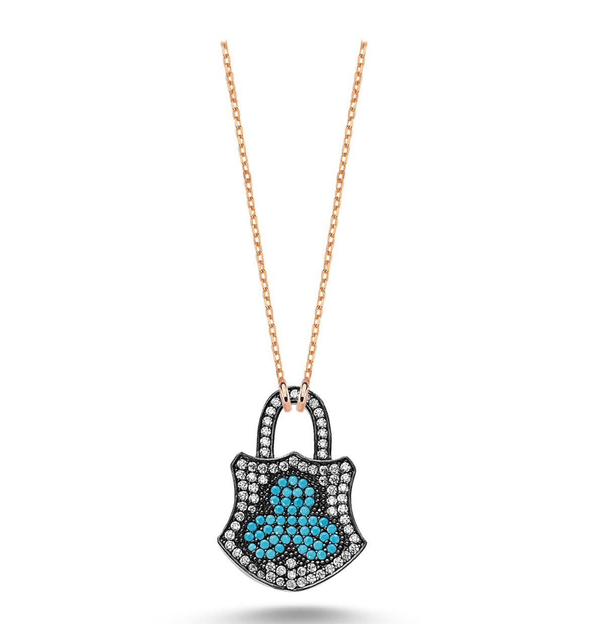 Beyaz ve Turkuaz Zirkon Taşlı Kilit Kolye