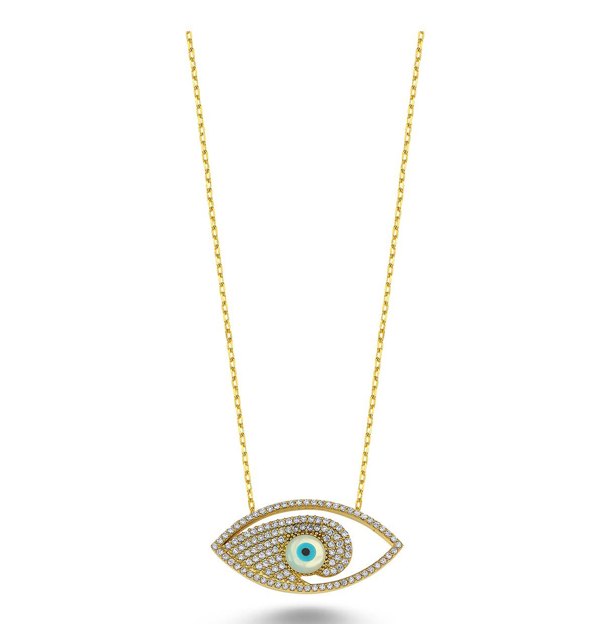 Beyaz Zirkon Taşlı Göz Kolye