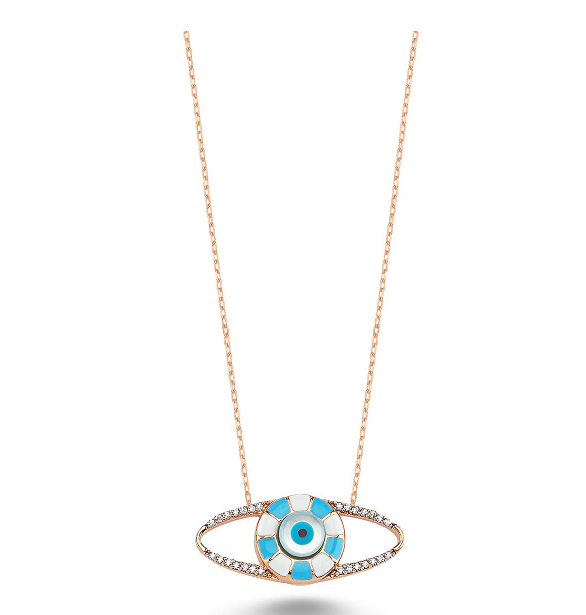Beyaz Zirkon Taşlı Göz Kolye