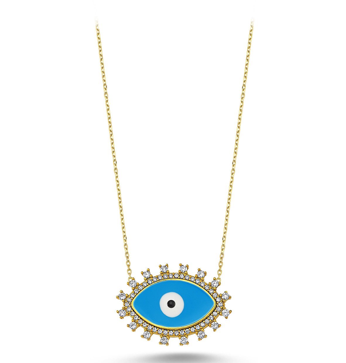 Beyaz Zirkon Taşlı Göz Seramik Gümüş Kolye