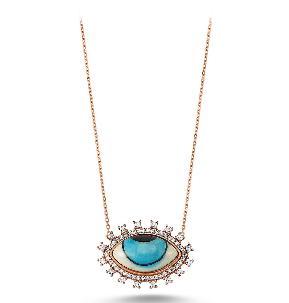 Beyaz Zirkon Taşlı Göz Seramik Gümüş Kolye