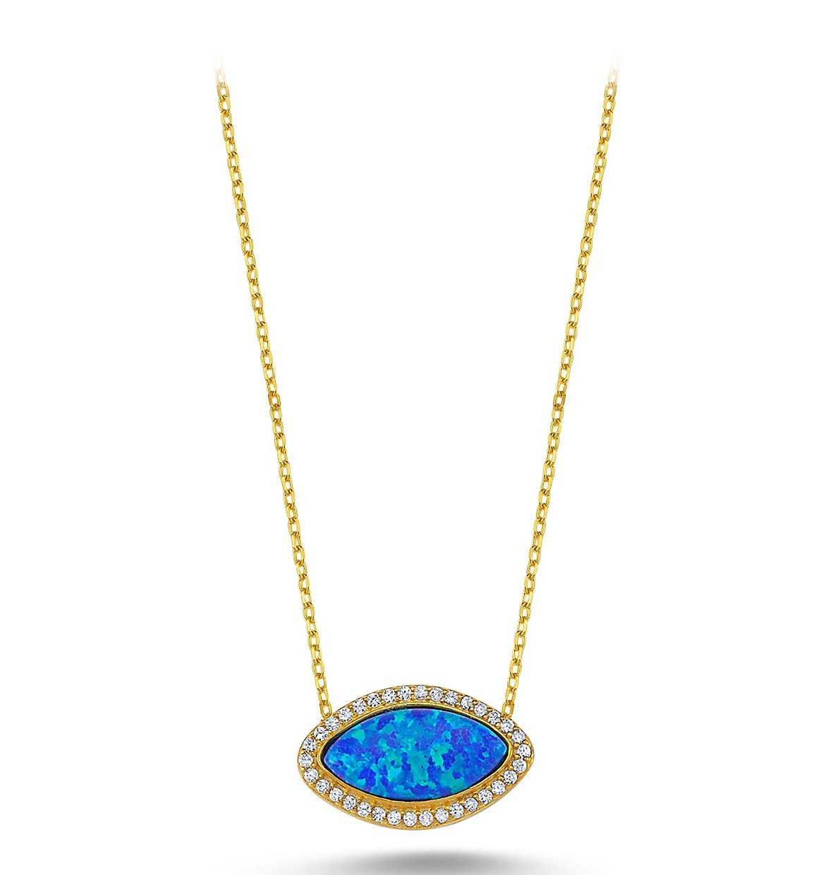 Beyaz Zirkon Taşlı Opal Kolye