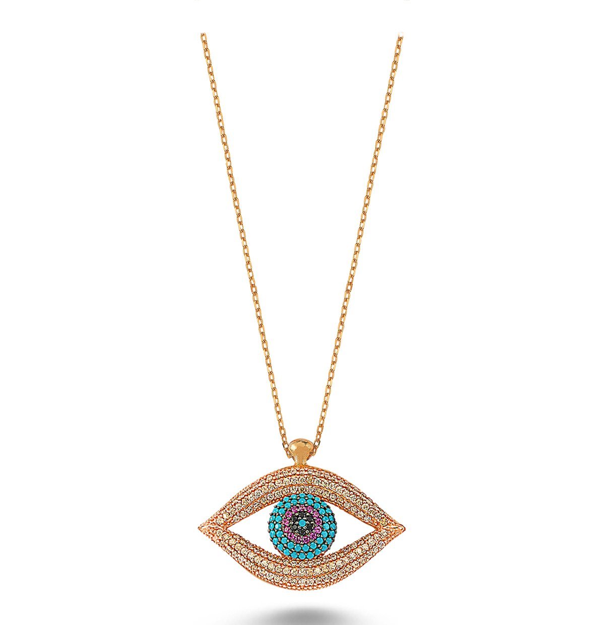 Zirkon Taşlı Nazar Boncuğu Kolye