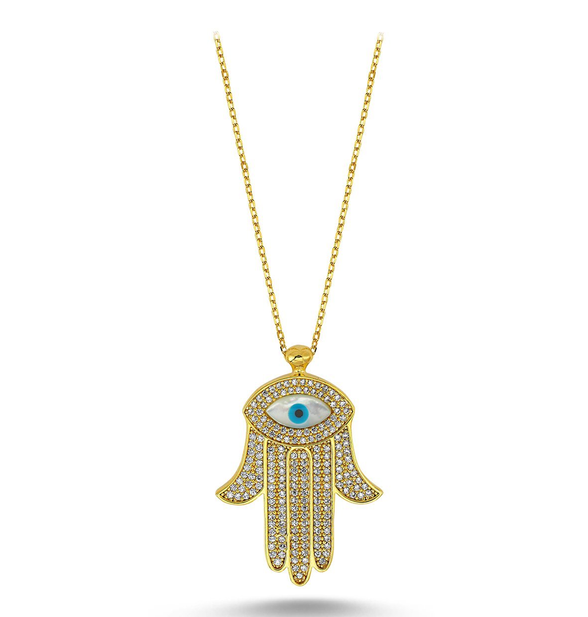 Fatma Ana Hand Zircon Stone Silver Necklace