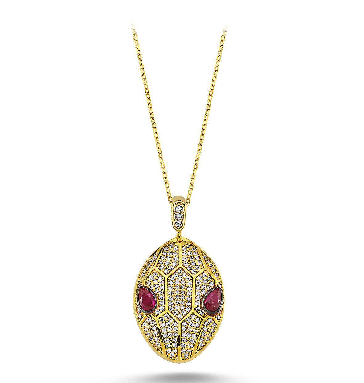 Fuşya ve Beyaz Taşlı Gümüş Yılan Kolye