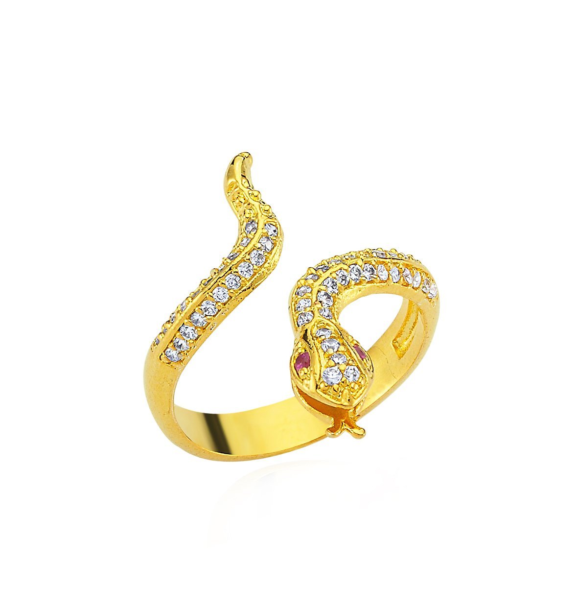 Fuşya ve Beyaz Taşlı Gümüş Yılan Yüzük