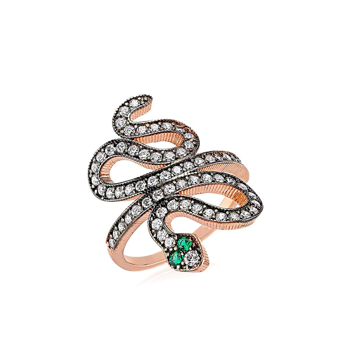 Yeşil ve Beyaz Taşlı Gümüş Yılan Yüzük