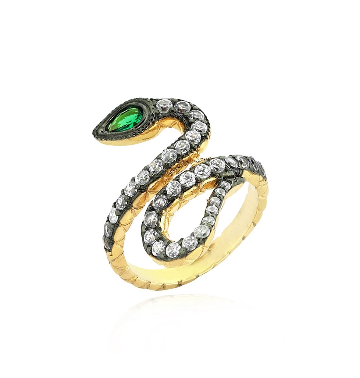 Yeşil ve Beyaz Taşlı Gümüş Yılan Yüzük