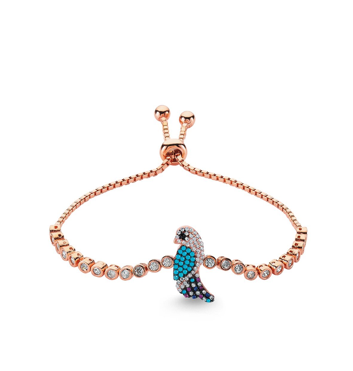 Renkli Taşlı Gümüş Asansör Bileklik