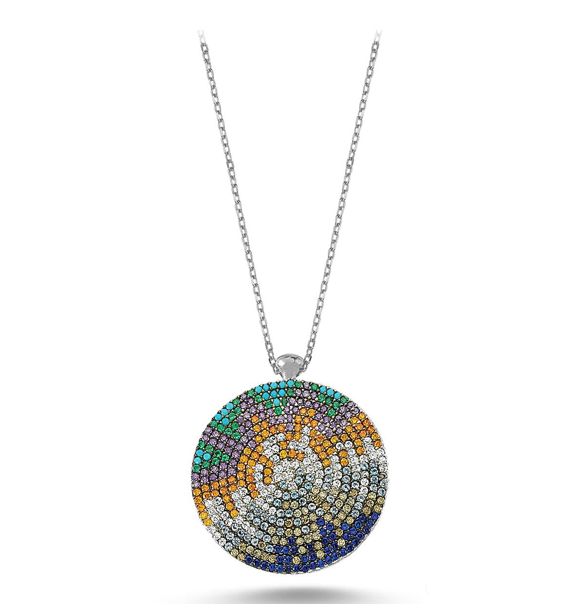 Renkli Zirkon Taş İşlemeli Hayalet Kolye