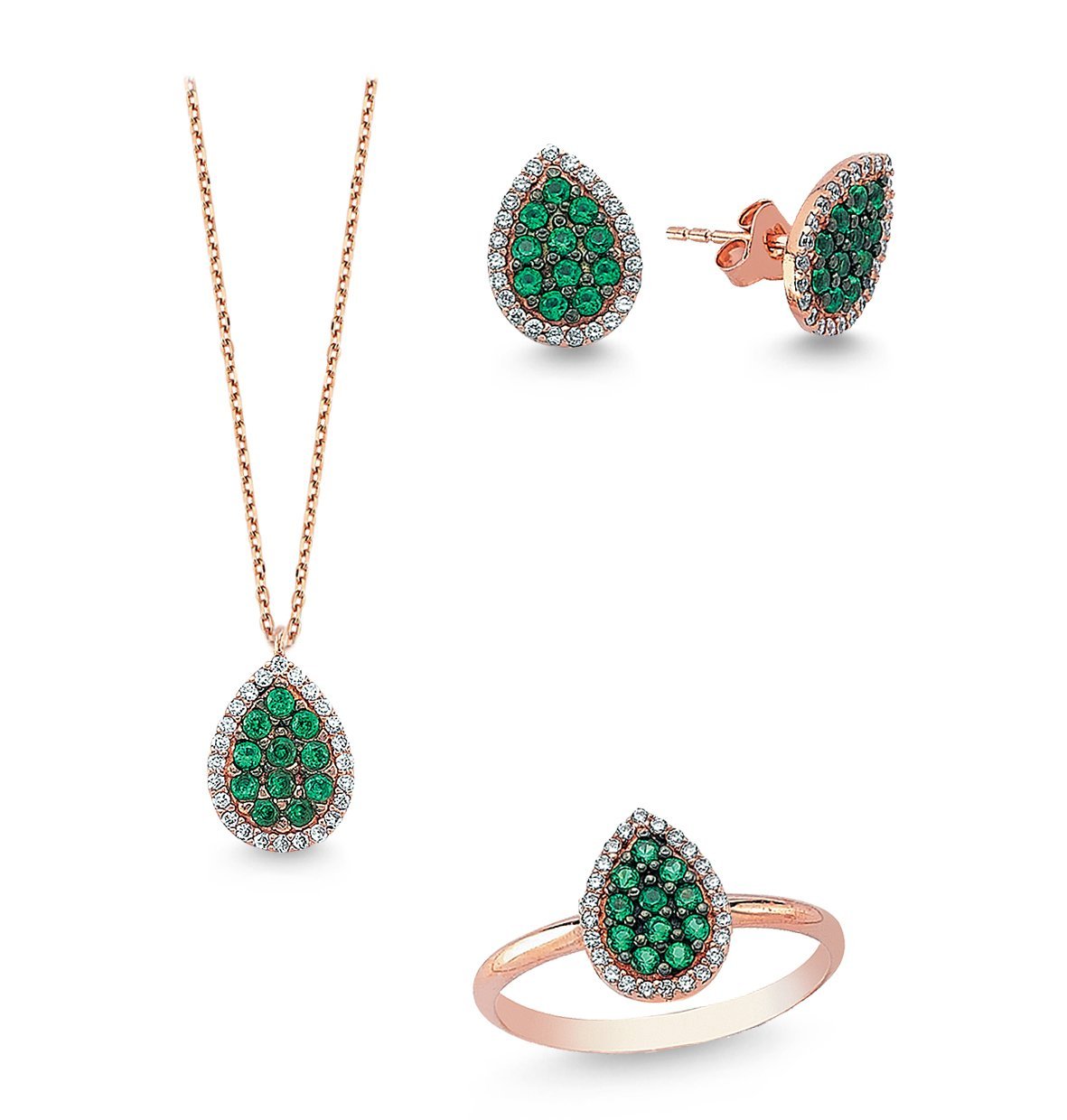 Renkli Zirkon Taşlı 3’lü Gümüş Kolye Küpe Yüzük Seti