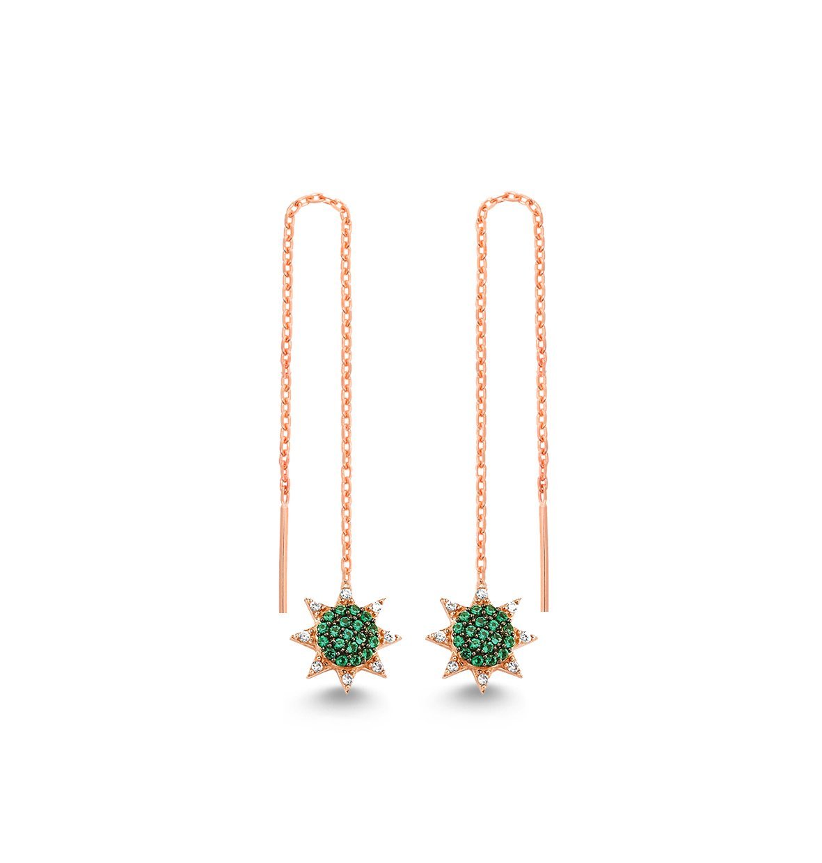 Renkli Zirkon Taşlı Zincir Sallantılı Küpe