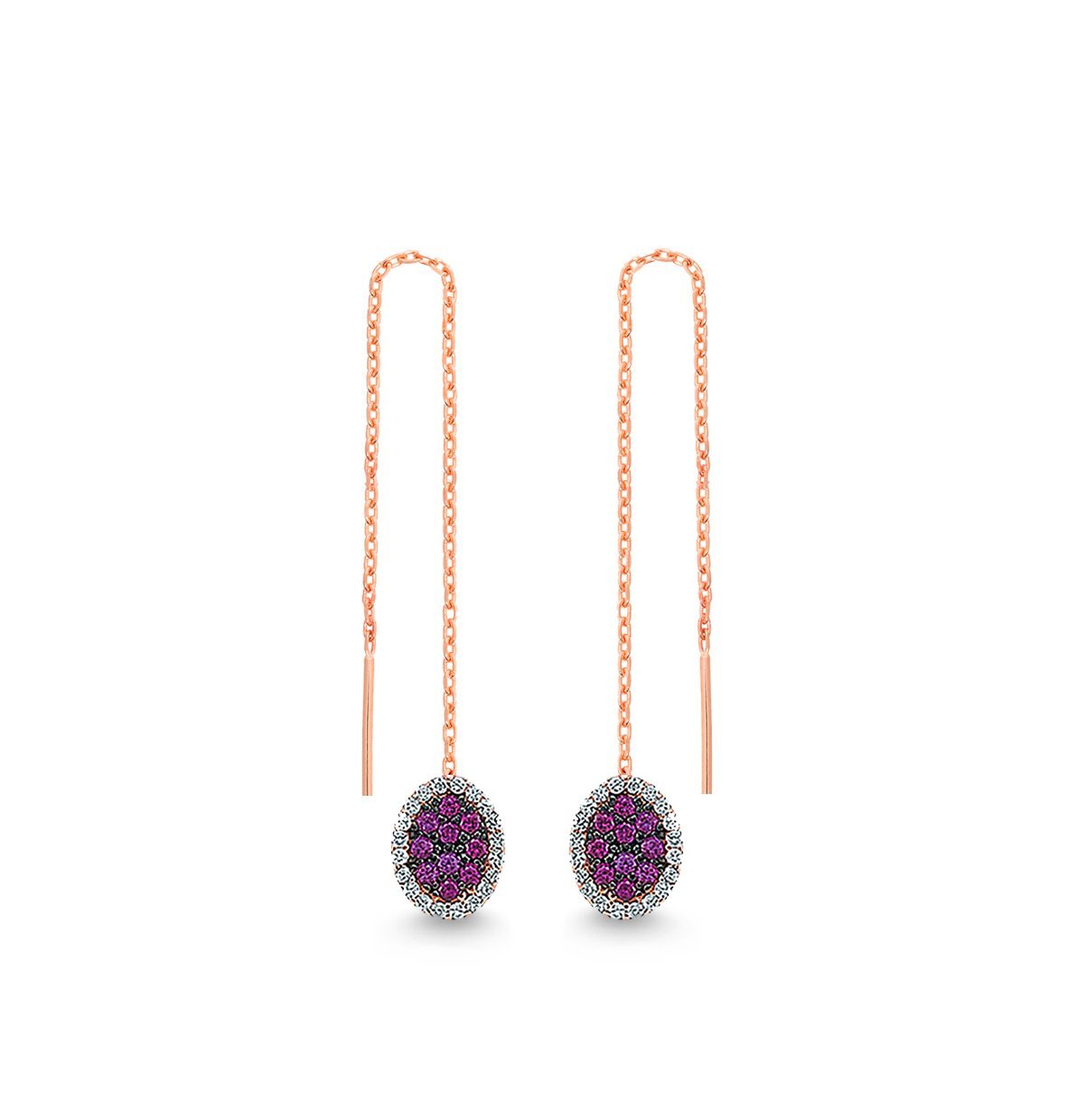 Renkli Zirkon Taşlı Zincir Sallantılı Küpe