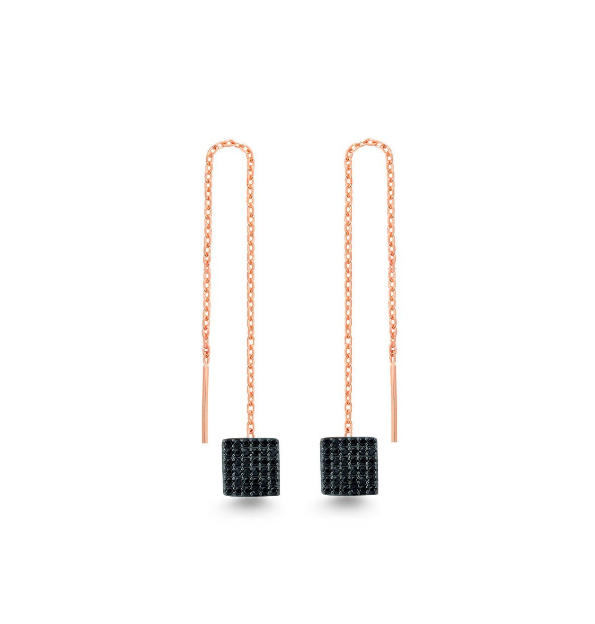 Siyah Zirkon Taşlı Zincir Sallantılı Küpe
