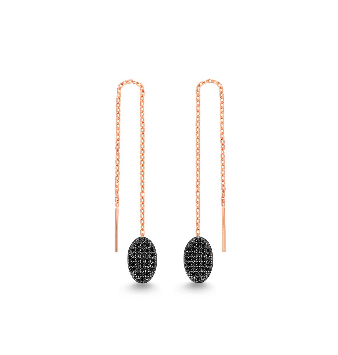 Siyah Zirkon Taşlı Zincir Sallantılı Küpe