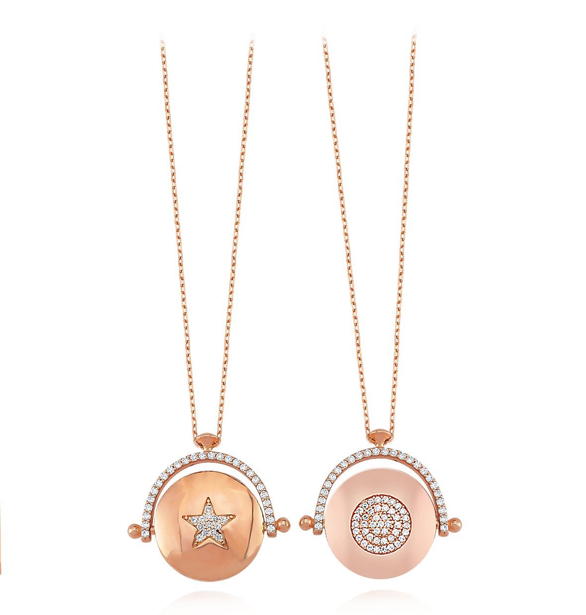 Star and Full Moon Silver Propeller Necklace