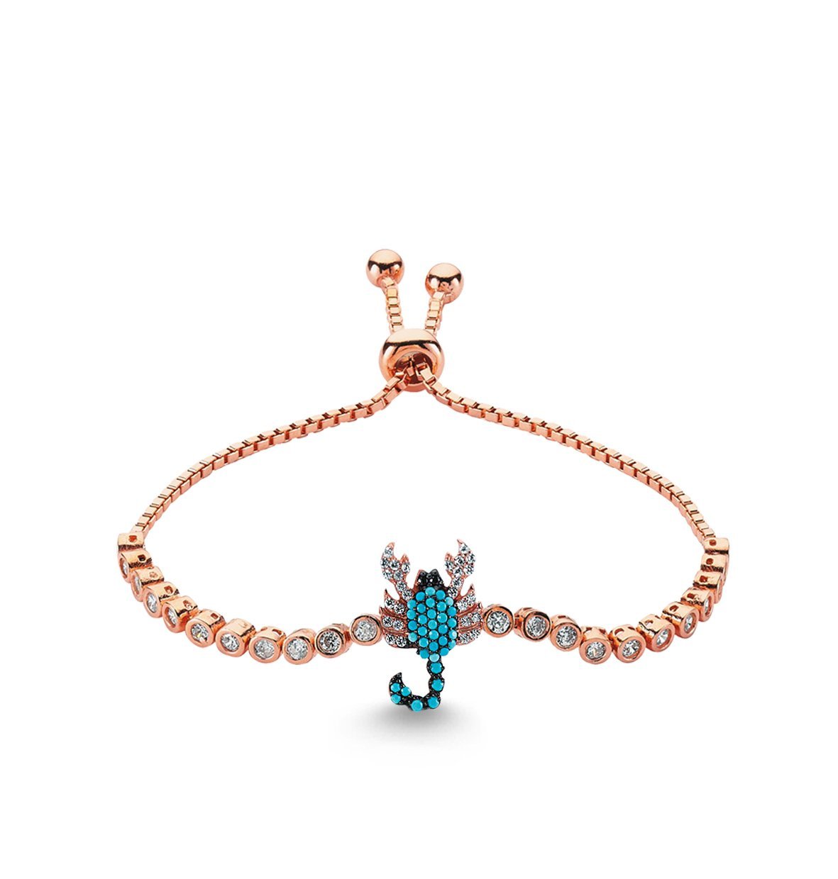 Turkuaz ve Beyaz Taşlı Akrep Model Asansör Bileklik