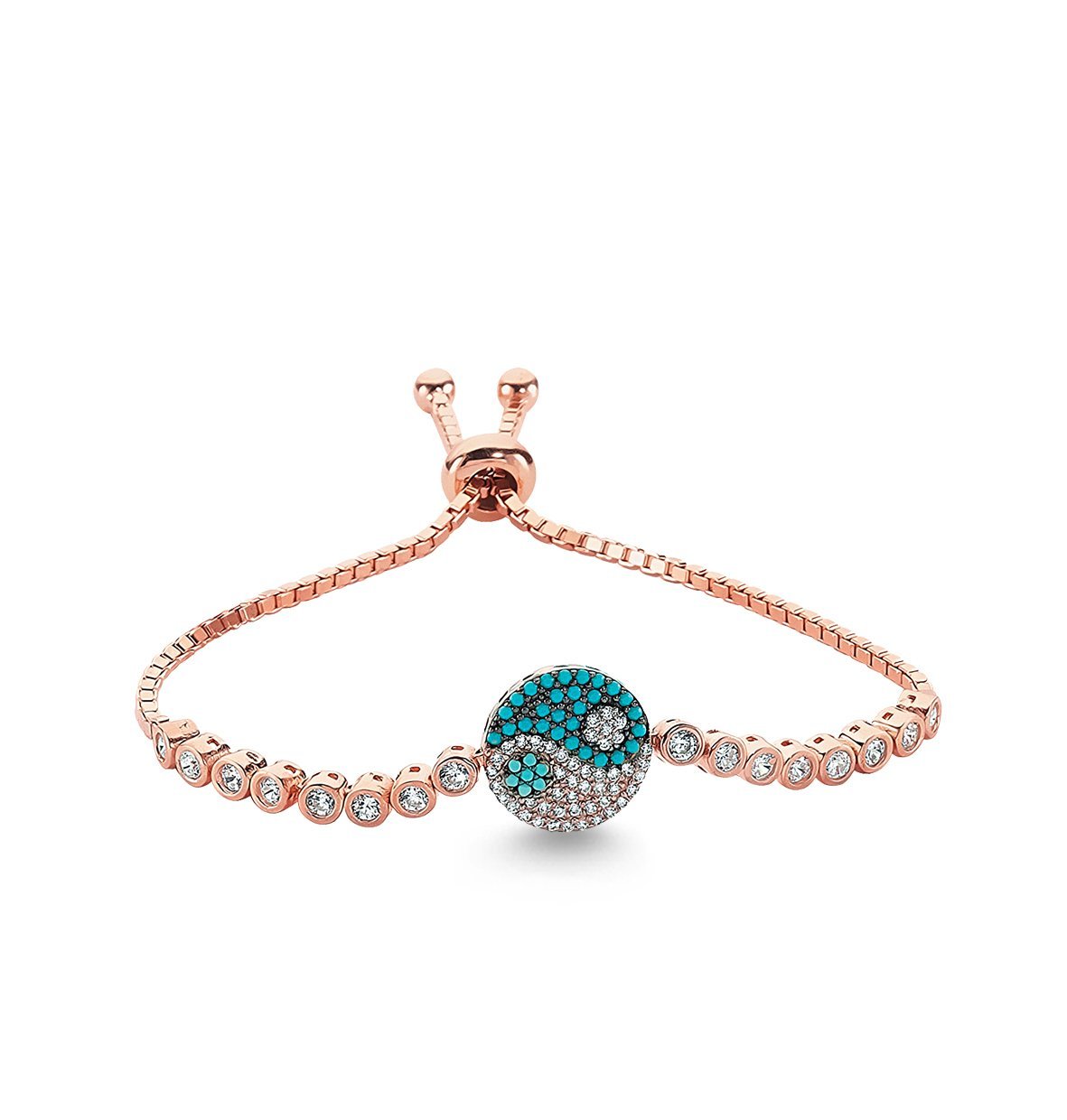Turkuaz ve Beyaz Taşlı Gümüş Asansör Bileklik