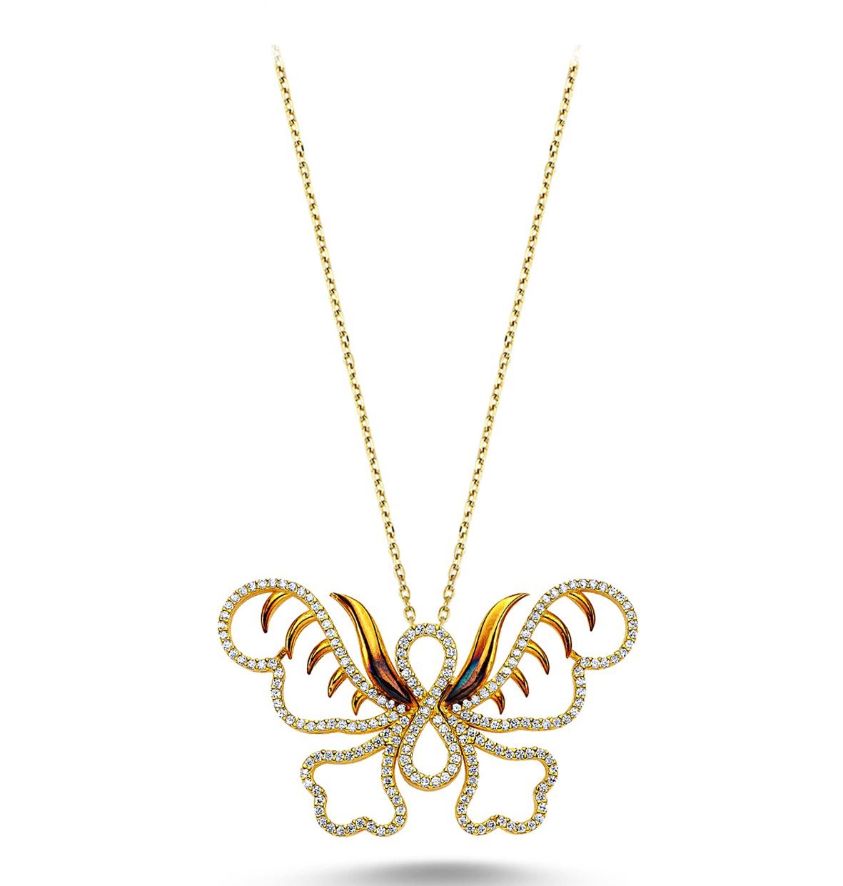 Zirkon Taş İşlemeli Kelebek Kolye